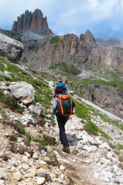 Pred nami je vzpon na prelaz Cigolade, na sliki ne deluje ne vem kaj, v resnici pa je kar strm in smo tu uvedli klic "slikamo", ko si se komaj vlekel gor in rabil pol minutke pavze, si se ustavil narediti fotko in hkrati zadihal... Ker imam kar precej slik s tega prelaza, očitno sem potrebovala več pavz za "fotografiranje" ;))