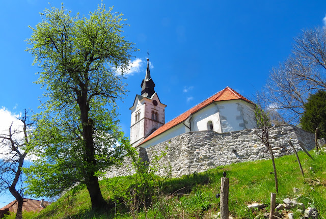 Ker je cerkev na hribčku, tudi tukaj jo komaj uspem spraviti v objektiv fotoaparata v celoti:
